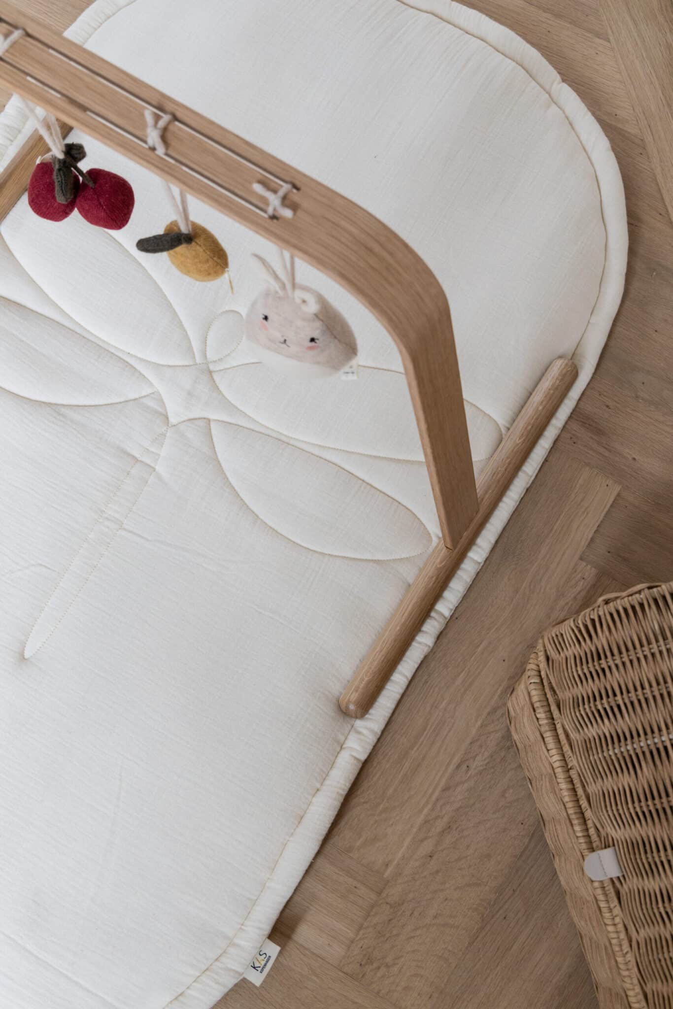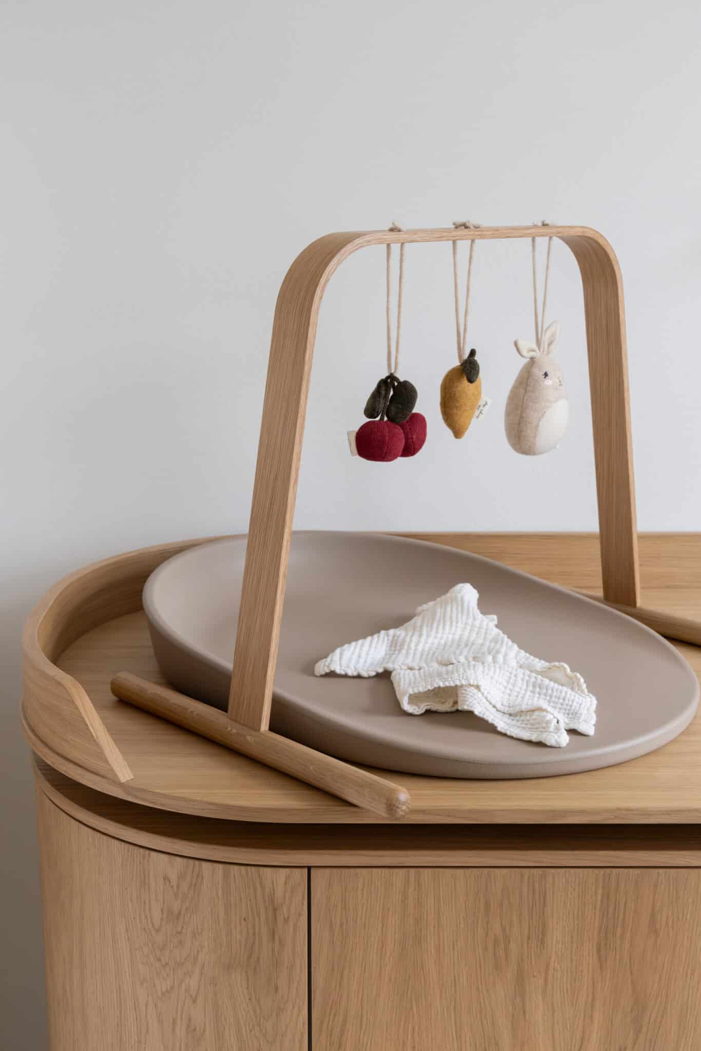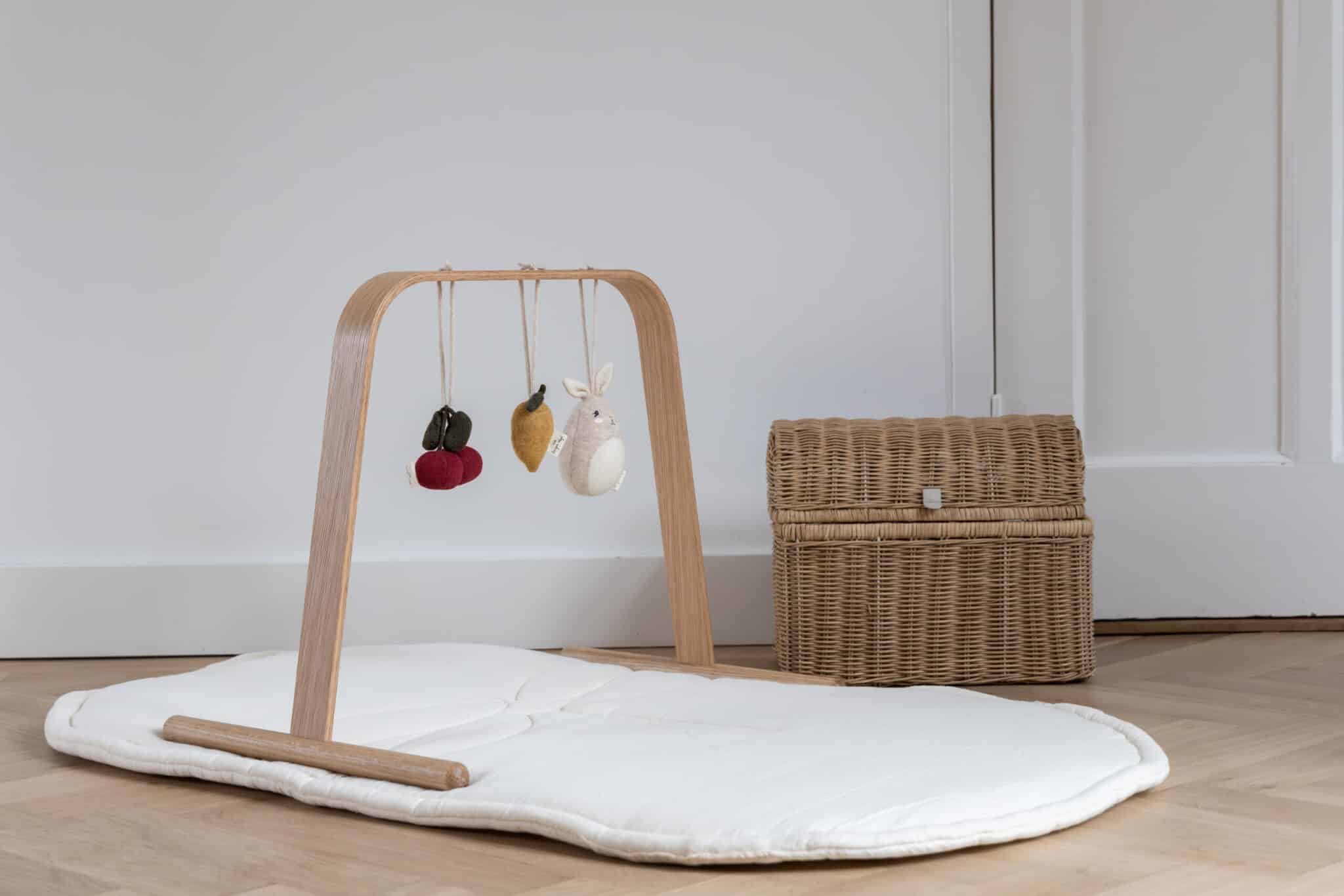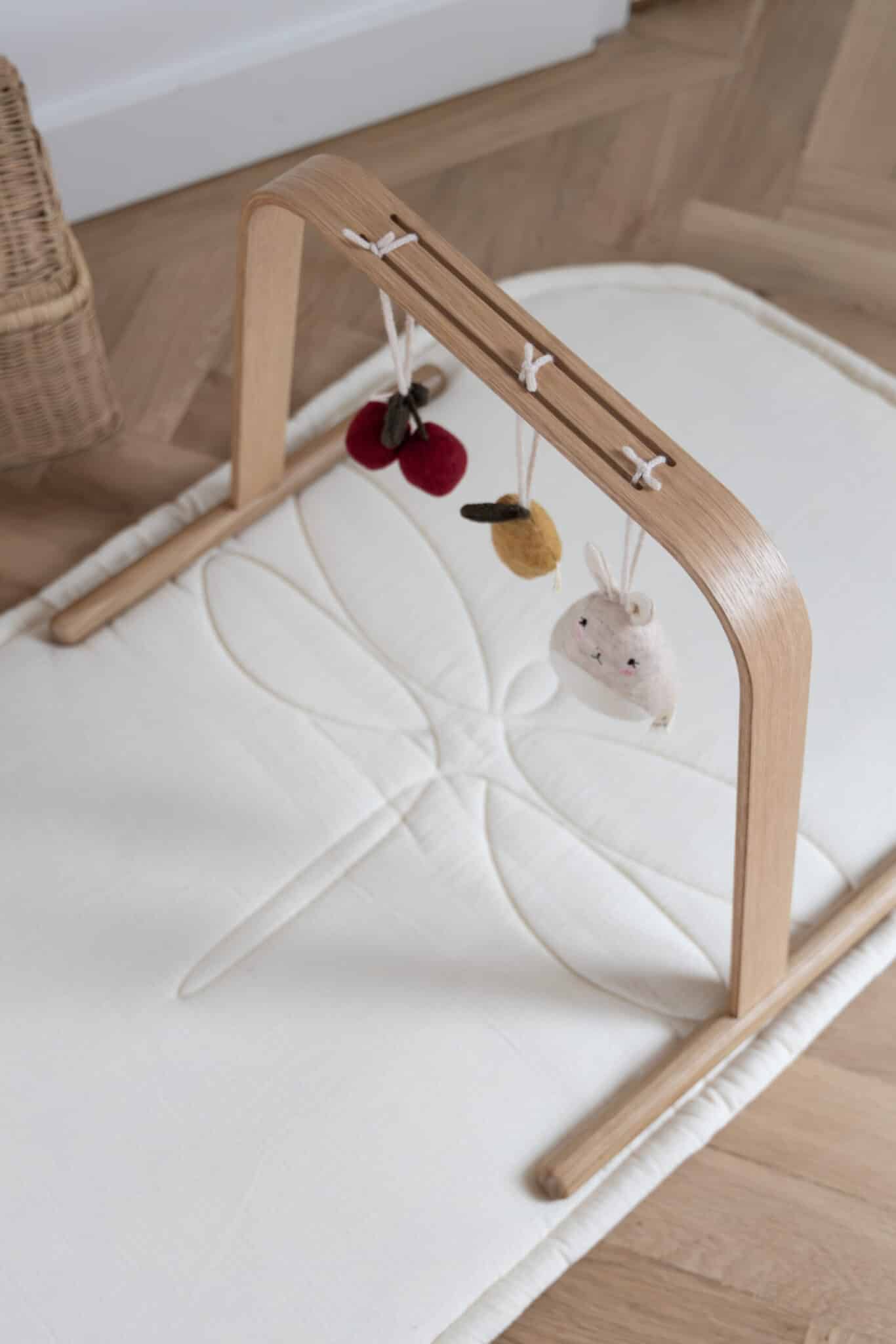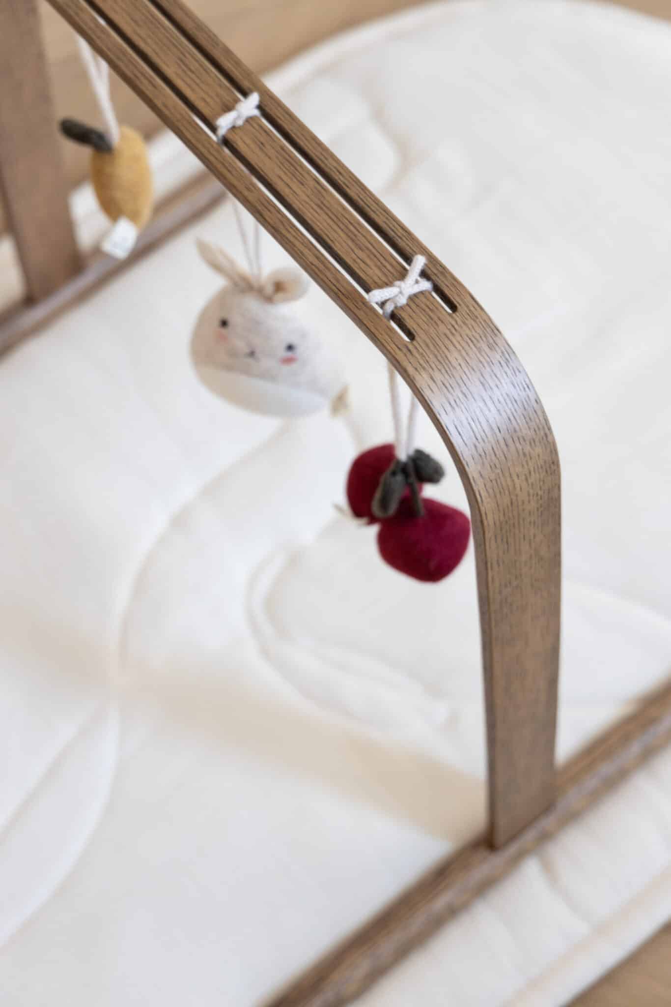 Stativet leveres uden legetøj, så du kan tilføje babys yndlingslegetøj og skabe en hyggelig og stimulerende verden. Efterhånden som barnet udvikler sig og får nye interesser, kan du nemt skifte legetøjet ud og tilpasse stativet til barnets behov.