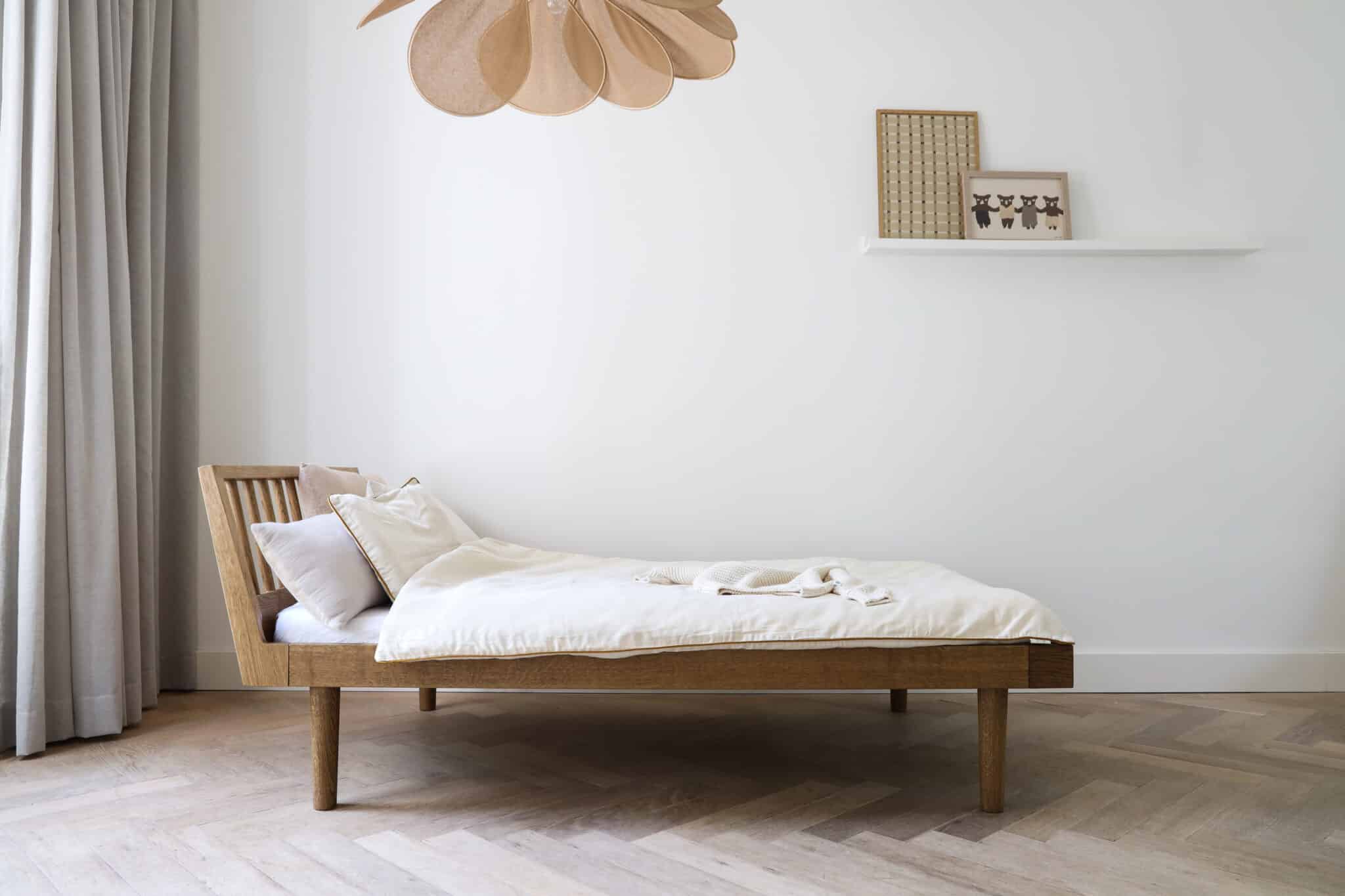Gavlene kan tages af og enderne lukkes med tilkøbsdele og møblet forvandles derved til en daybed eller den klassiske Eli seng.
