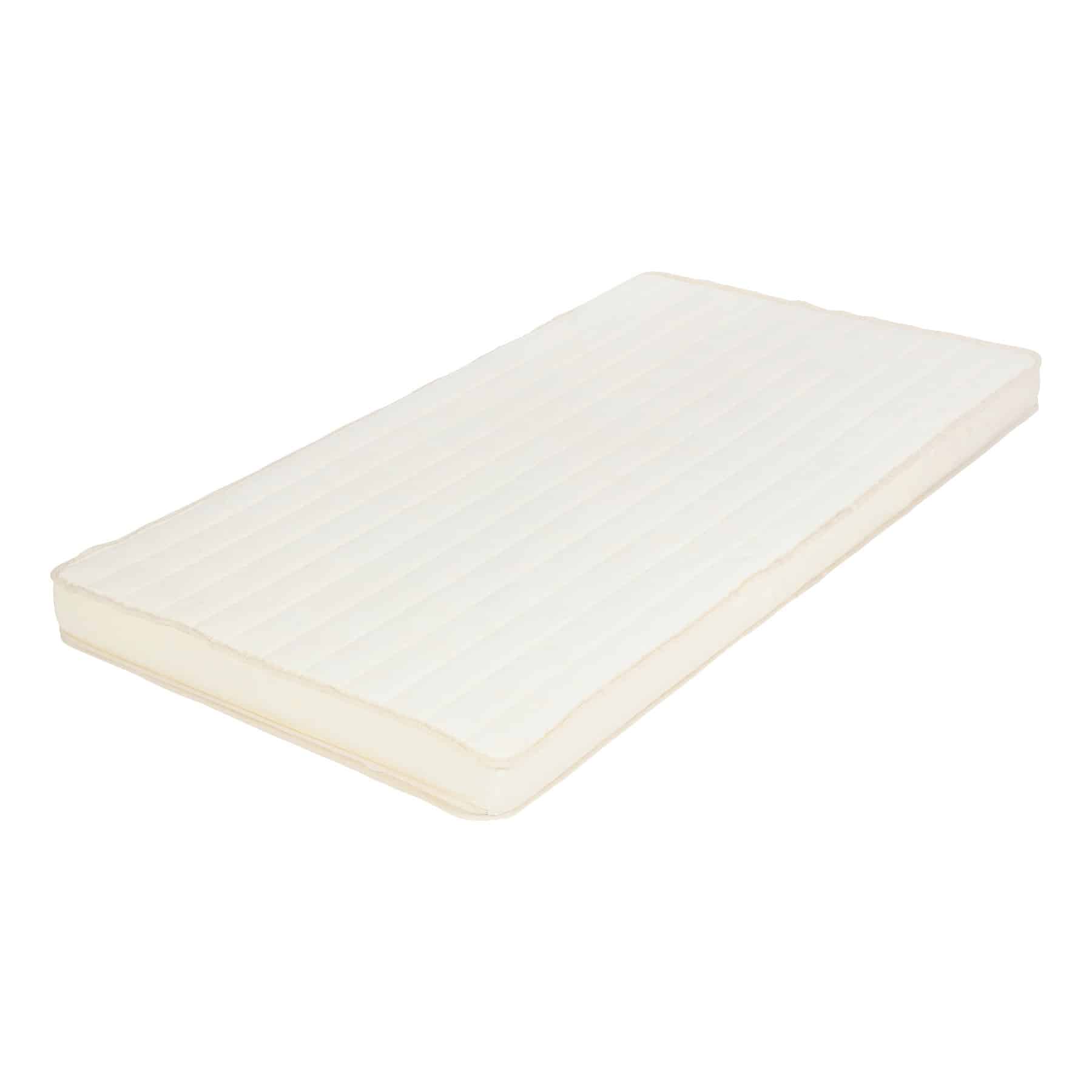 Madrassen er fremstillet af høj kvalitet koldskum og er vendbar. Madrassen er betrukket med et quiltet betræk i bomuldsvelour, lavet af 100% økologisk bomuld. Dette åndbare betræk har en blød overflade, der hjælper med at regulere barnets kropstemperatur.