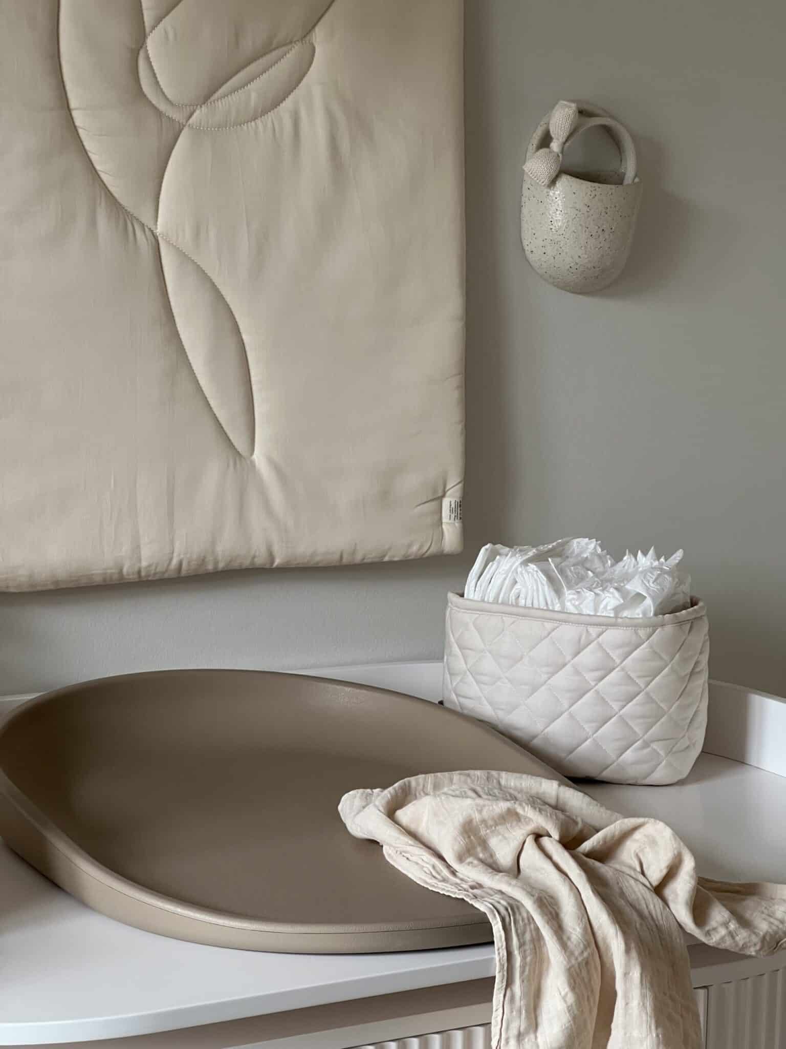 Puslepuden har en slidstærk, vandafvisende overflade, så pletter ikke trænger igennem og sætter sig fast. Du kan nemt tørre puden af med en fugtig klud med mildt sæbevand eller Anti-bakteriel overflade spray max 70% alkohol.