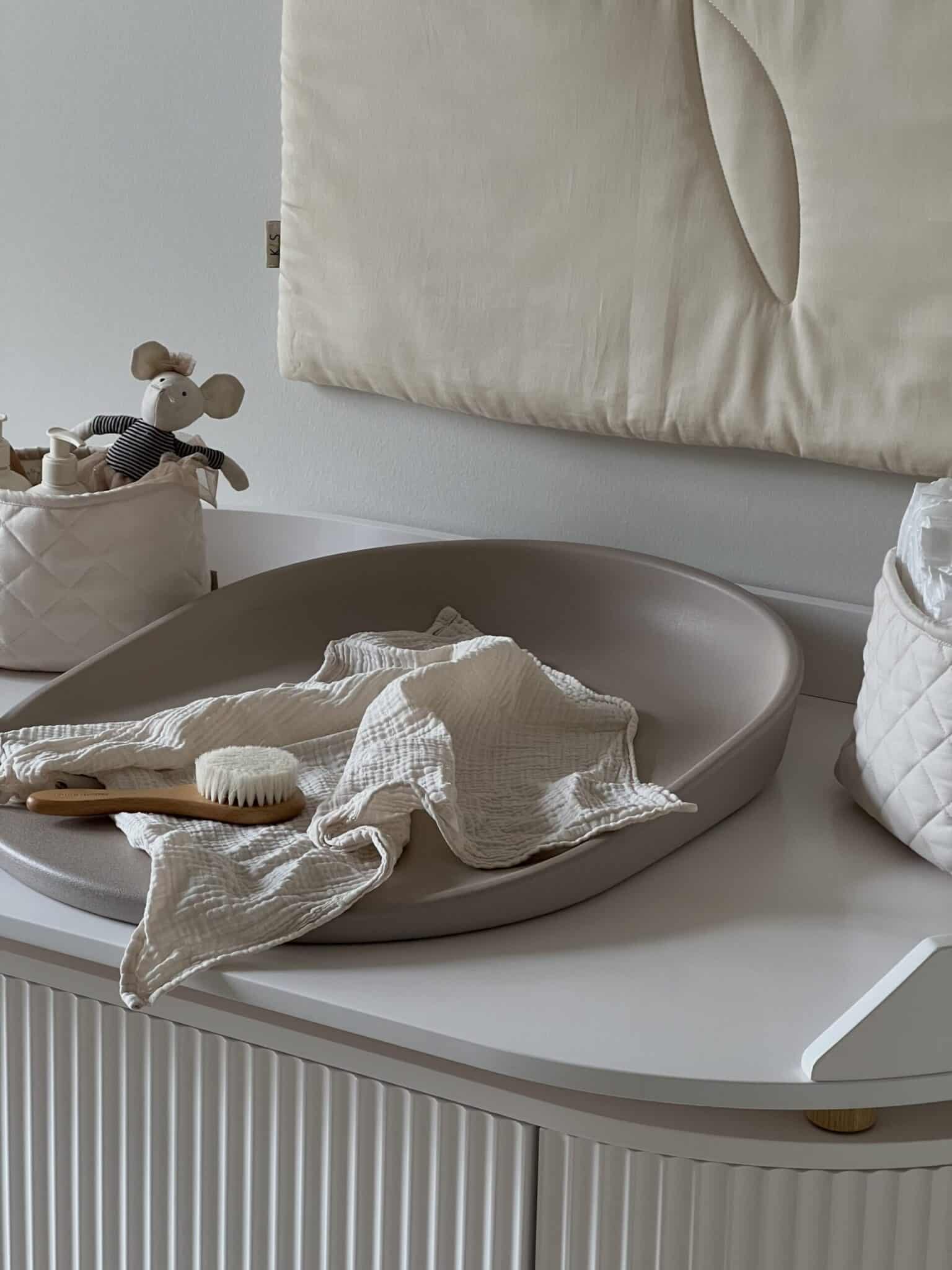 Puslepuden Dusty stone er designet i et ovalt og smukt design, med bløde former, der passer perfekt til vores KAI møbler, hvor både komfort og sikkerhed er fokus.