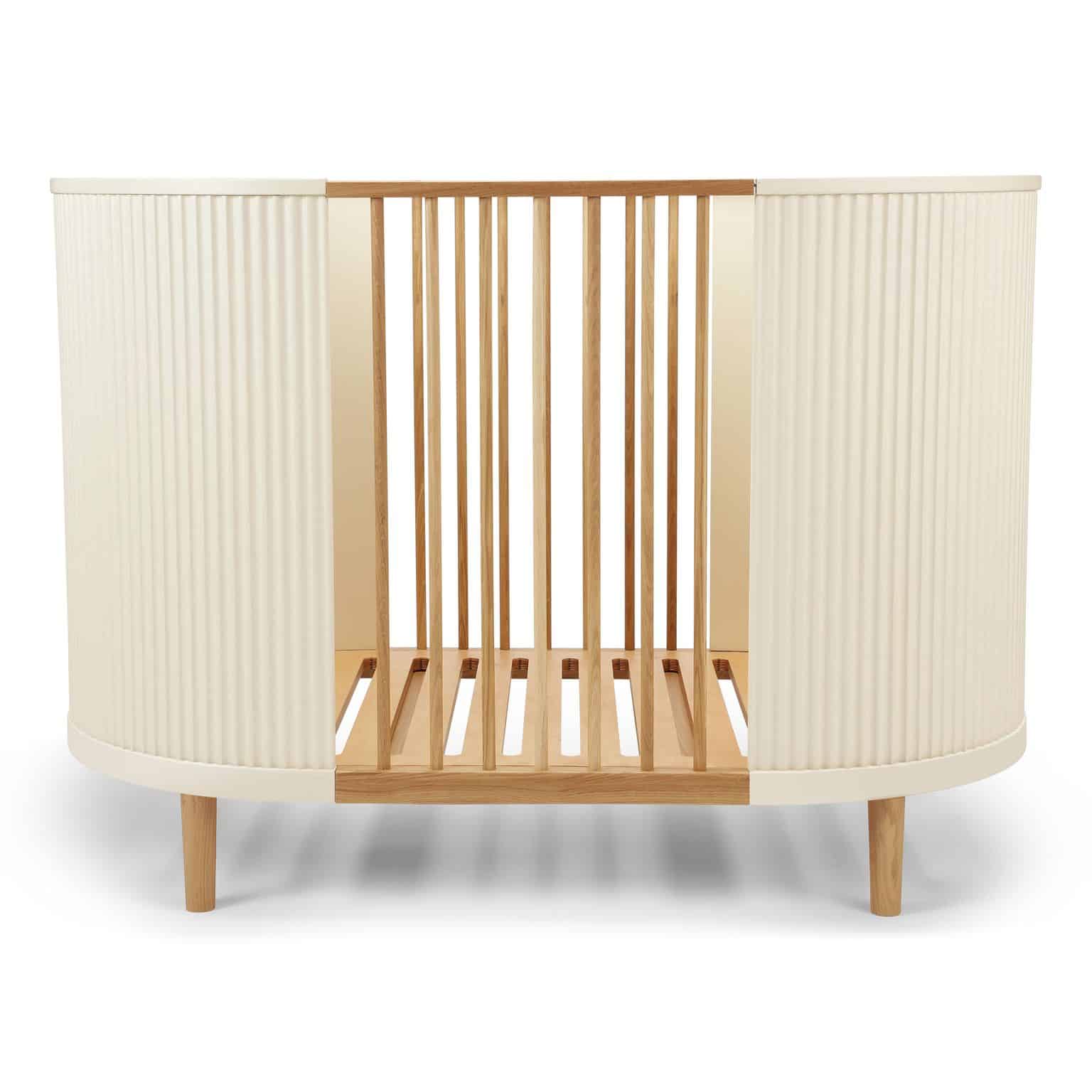 Når barnet er gammelt nok til selv at kravle ind og ud af sengen, kan den ene side fjernes. Efterhånden som barnet vokser, kan begge sider let afmonteres, og nye sidepaneler og bund kan tilkøbes, så sengen omdannes til en juniorseng, hvilket forlænger dens brug i mange år.