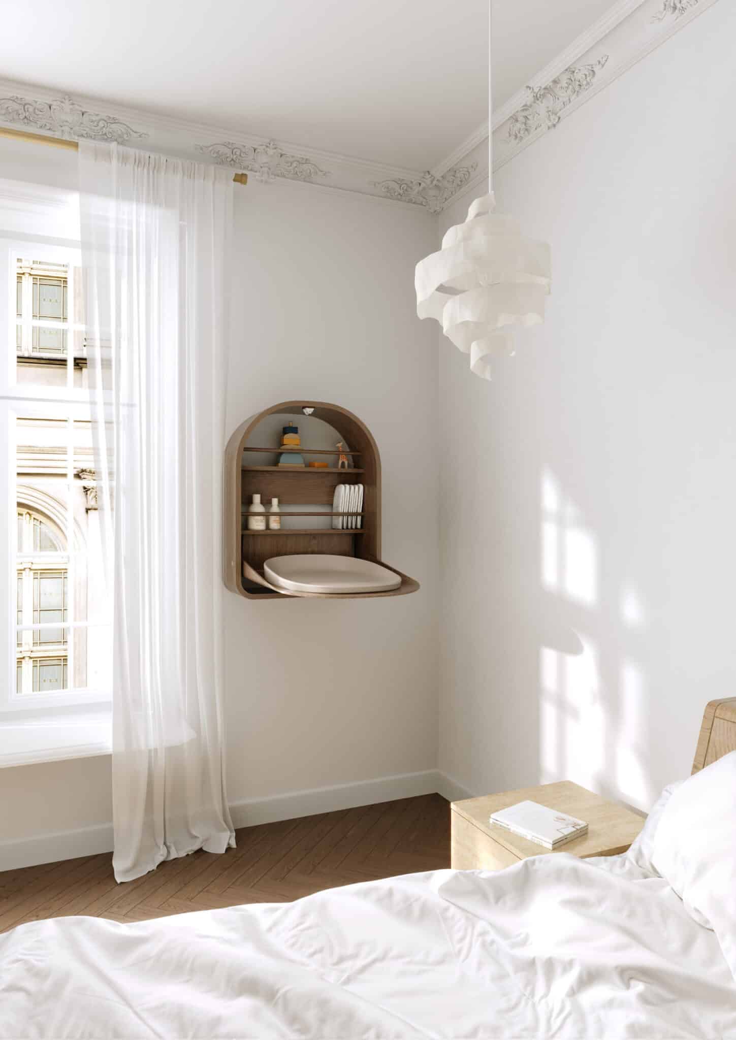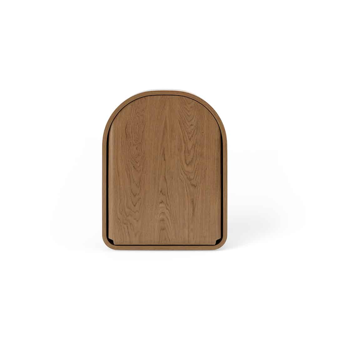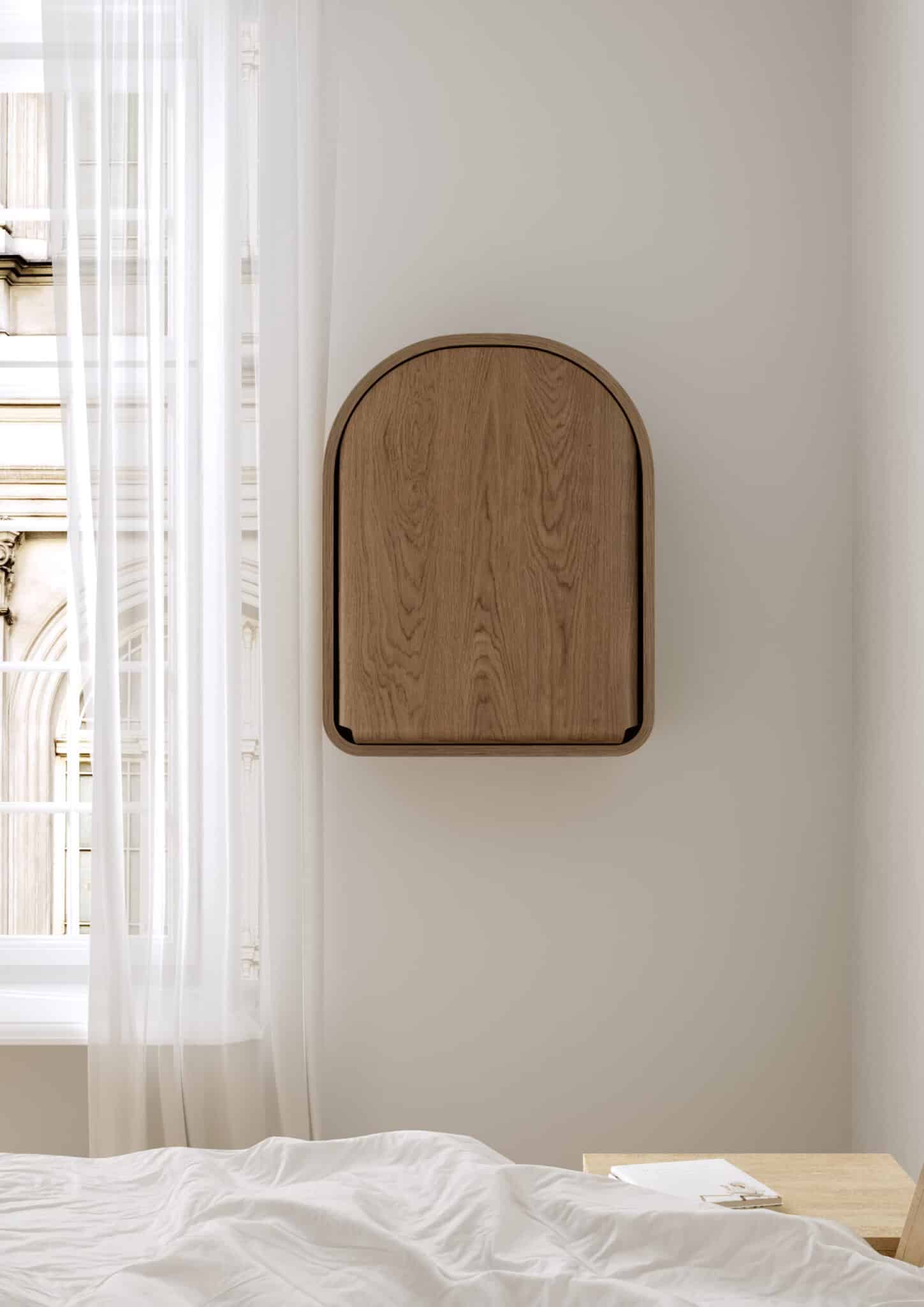 Kai væghængt puslebord kombinerer æstetik og funktionalitet med sine runde, smukke former. Det er perfekt til mindre boliger og pladsbesparende værelser, hvor det både sparer plads og tilføjer et stilfuldt touch. Puslebordet åbnes og lukkes nemt med det Easy Touch-system, hvilket gør det både praktisk og brugervenligt.