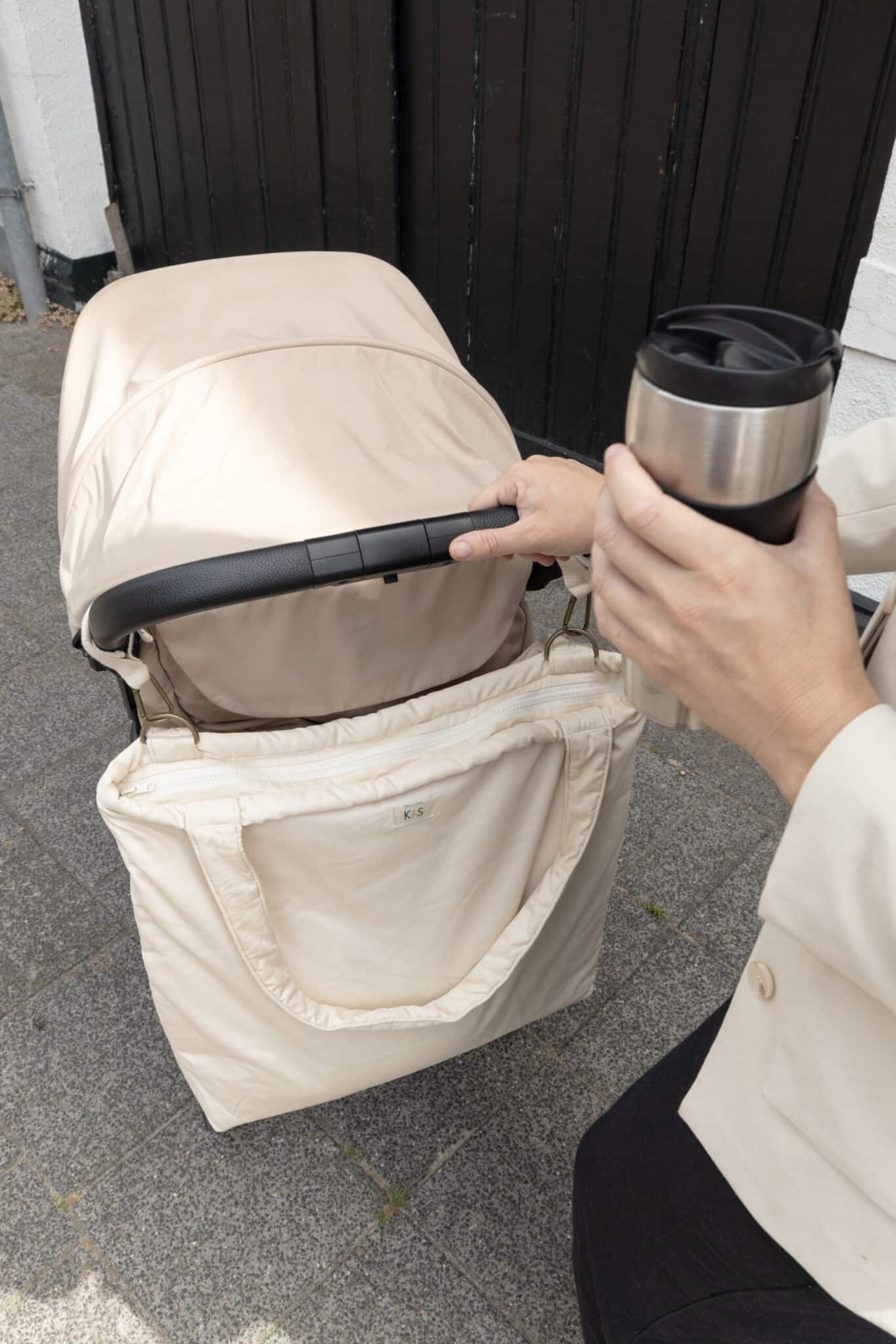 Der medfølger hængestropper, som gør det nemt at montere tasken på din barnevogn eller klapvogn.