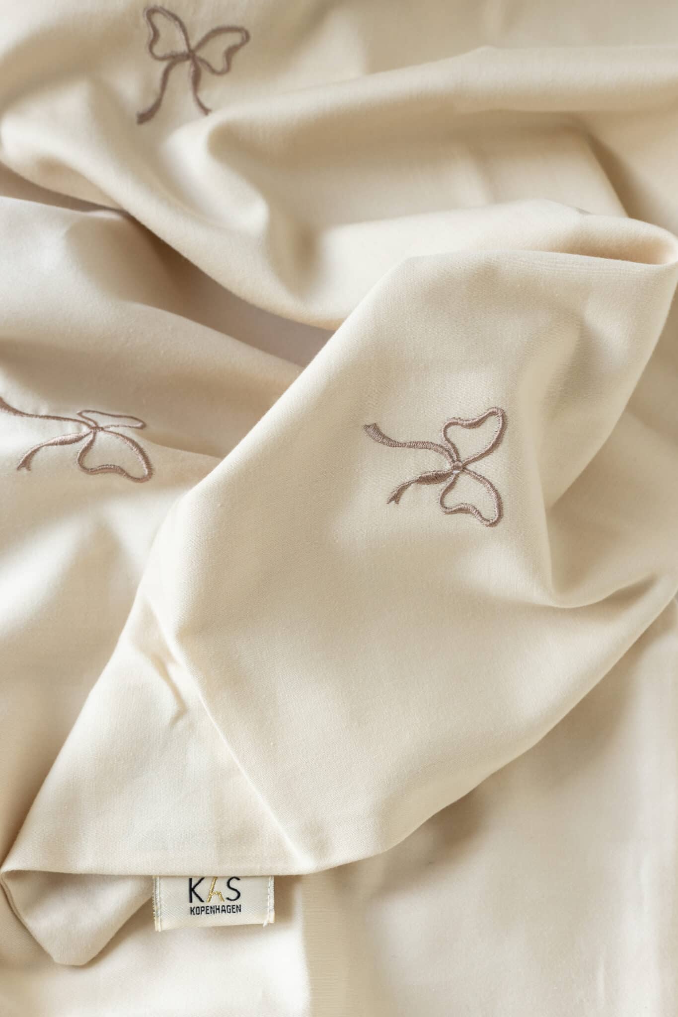 Det fineste sengetøj i økologisk satinvævet bomuld en silkeblød kvalitet og små, fine broderede sløjfer.