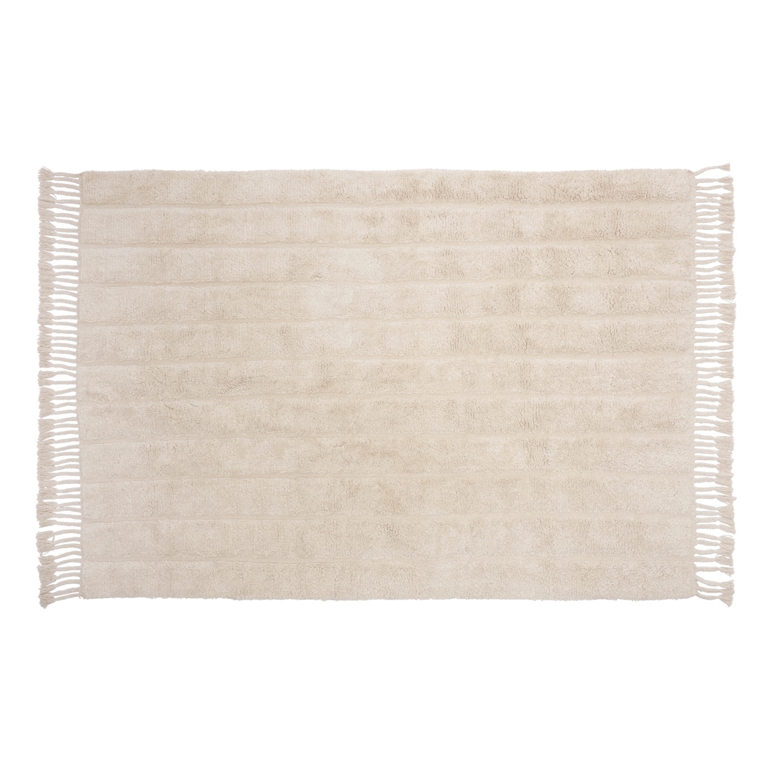 Da tæpperne er håndlavede, kan der være små variationer i form og farve. Kan vaskes uden skyllemiddel på 30 grader og uden brug af blegemiddel tørretumbles bagefter.