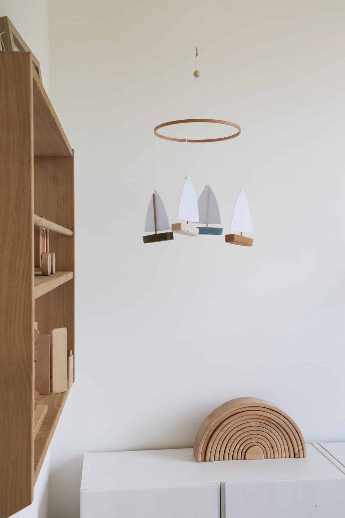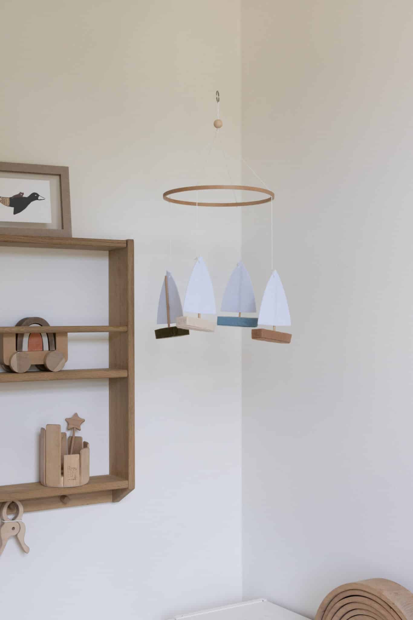 Dekorativ håndlavet uro, som kan hænges over puslebordet eller over sengen, for at skabe noget beroligende at kigge på.